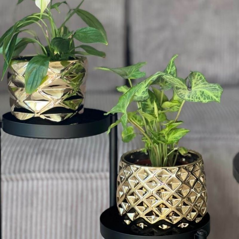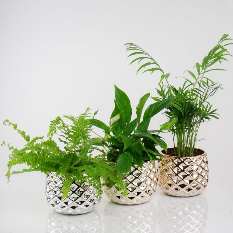 Glazura doda eleganco minimalističnemu videzu, izbirate pa lahko med različnimi oblikami in barvami loncev. Izjemno elegantni izdelki iz srebrne, bele in zlate glazirane keramike, ki je dodatno galvanizirana.