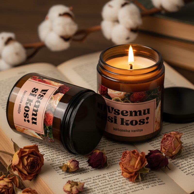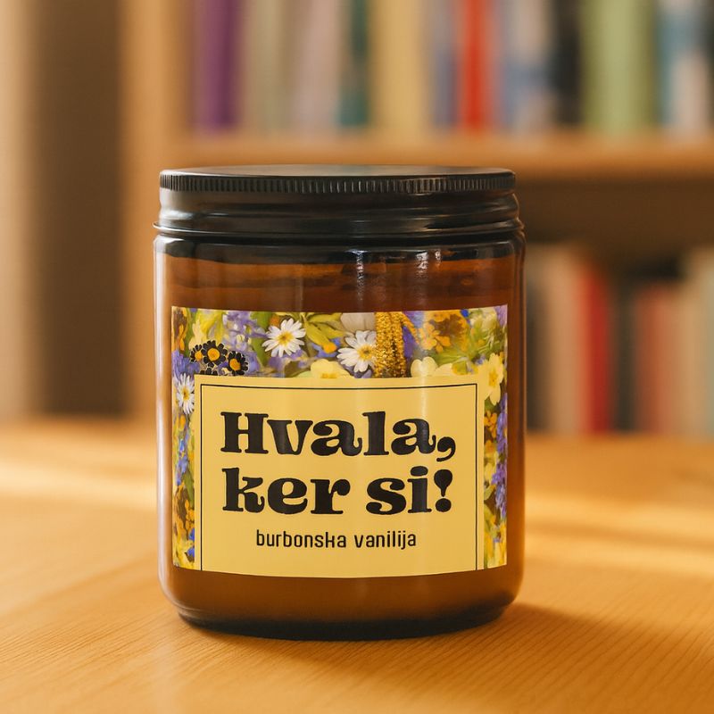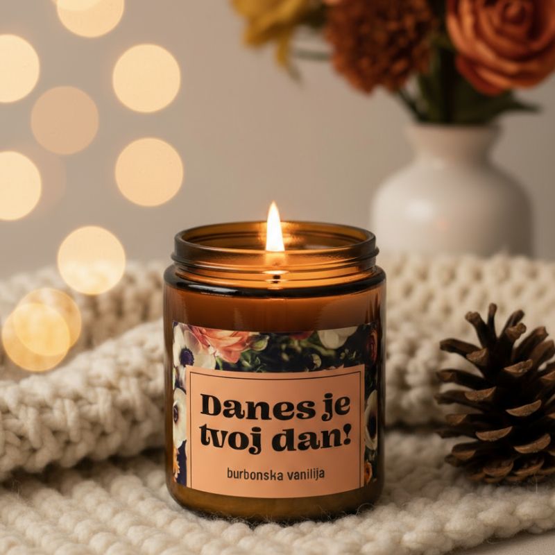 Dišeča dekorativna sveča iz kolekcije Premium združuje prefinjen dizajn, kakovostno izdelavo in bogat, zapeljiv vonj burbonske vanilije. Svečo odlikuje elegantno rjavo steklo v kombinaciji s črnim aluminijastim pokrovčkom, ki prostoru doda sodoben, a hkrati topel estetski poudarek. Sveča je primerna za dnevno uporabo in ustvarjanje prijetnega ambienta v dnevni sobi, spalnici, pisarni ali kot dekorativen dodatek na polici. Nežen, sladek vonj burbonske vanilije deluje pomirjujoče in ustvari občutek udobja ter domačnosti. Posebnost kolekcije Premium je možnost izbire med 12 različnimi dizajni in napisi, zaradi česar je sveča tudi odlična ideja za darilo ob posebnih priložnostih ali kot osebna pozornost z izbranim sporočilom.
