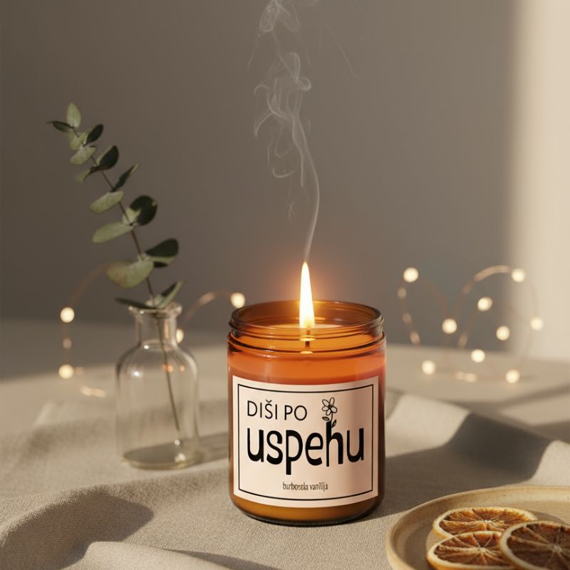 Dišeča dekorativna sveča iz kolekcije Premium združuje prefinjen dizajn, kakovostno izdelavo in bogat, zapeljiv vonj burbonske vanilije. Svečo odlikuje elegantno rjavo steklo v kombinaciji s črnim aluminijastim pokrovčkom, ki prostoru doda sodoben, a hkrati topel estetski poudarek. Sveča je primerna za dnevno uporabo in ustvarjanje prijetnega ambienta v dnevni sobi, spalnici, pisarni ali kot dekorativen dodatek na polici. Nežen, sladek vonj burbonske vanilije deluje pomirjujoče in ustvari občutek udobja ter domačnosti. Posebnost kolekcije "Premium Diši po" je možnost izbire med 6 različnimi dizajni in napisi, zaradi česar je sveča tudi odlična ideja za darilo ob posebnih priložnostih ali kot osebna pozornost z izbranim sporočilom.
