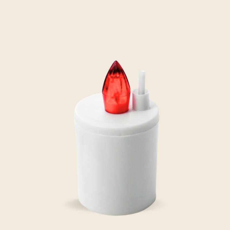 Elektronski modul z belim ohišjem in rdečim plamenčkom, ki migeta kot svečka v vetru. Modul se prižge tako, da se odstrani slamica.