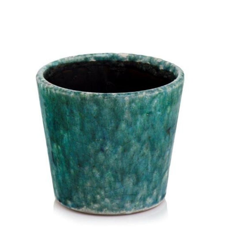 Keramični lonec iz kolekcije Vintage okrogle, trapezne oblike v zeleno-turkizni barvi. Izdelek je v ..