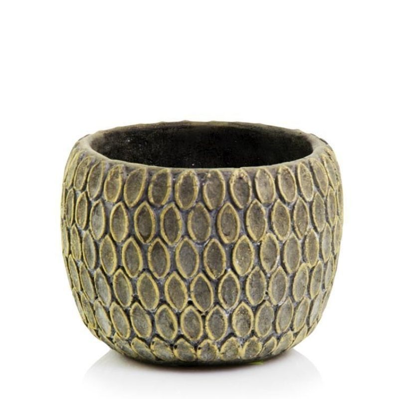 Keramični okrasni lonec iz kolekcije Rustic okrogle oblike v barvi starinskega, a še vedno svetlečega zlata.